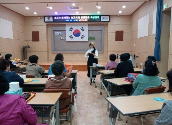 이날 교육에는 지역의 대표적인 농촌여성학습단체인 생활개선증평군연합회(회장 송영희) 임원 및 전통문화연구회원 등 30여 명이 참석했다.
