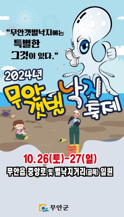 전남 무안군은 10월 26일, 27일 이틀간 ‘2024 무안갯벌낙지축제’를 무안읍 뻘낙지거리 및 중앙로 일원에서 개최한다.