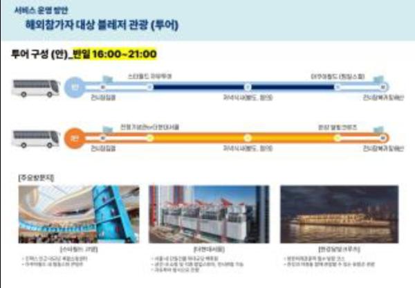끝으로, 문체부-지자체가 협업하여 지역 전시회와 연계한 문화·관광 프로그램도 본격 제공한다. 모든 방한 바이어들에게는 숙박?식사에 활용할 수 있는 지역관광 바우처를 지급할 예정이며, 지자체와 협업하여 다양한 현장방문과 관광코스 참관도 지원한다. 일산(임진각, 평화누리공원, 스타필드), 서울(더현대서울, 한강 크루즈, 홍대 거리, 광화문, 경복궁), 대구(수성못, 사유원, 서문시장) 등 지역별로 다양한 문화 체험 및 관광 프로그램이 마련되어 있다.