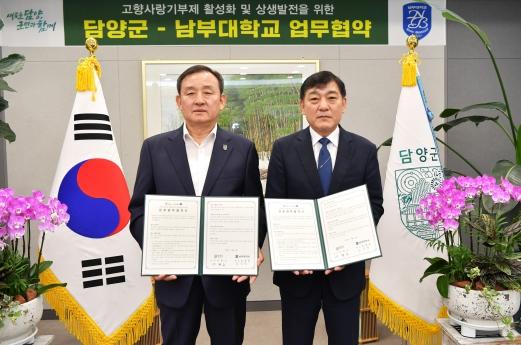 담양군과 남부대학교가 15일 고향사랑기부 활성화 및 상생발전을 위해 상호 업무 협약을 체결했다.
