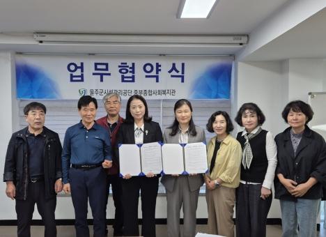 울주군시설관리공단 중부종합사회복지관이 15일 울주시니어클럽과 울주군 청장년 및 중장년 1인가구 고독사 예방을 위한 업무 협약을 체결했다.
