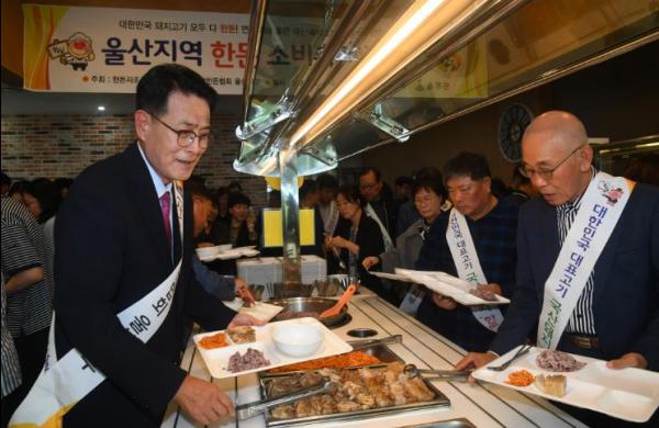 울산시 울주군이 15일 한돈협회 울산시지부와 함께 군청 구내식당에서 돼지고기 소비 촉진 행사를 실시했다.