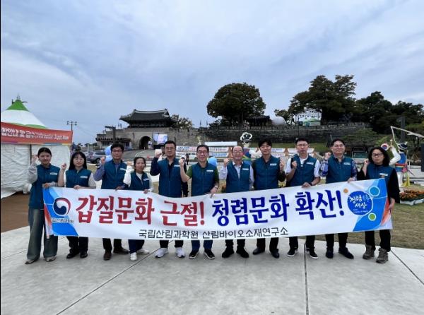 산림청 국립산림과학원 산림바이오소재연구소는 지난 10월 14일, 제73회 개천예술제가 진행 중인 진주성 일대를 찾아 청렴 캠페인을 펼쳤다.