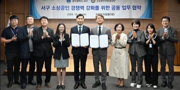 광주광역시 서구는 소상공인시장진흥공단 광주호남지역본부와 16일 서구청 이음홀에서 서구 소상공인의 경쟁력 강화 및 지역경제 활성화를 위한 공동협력 업무협약을 체결했다.