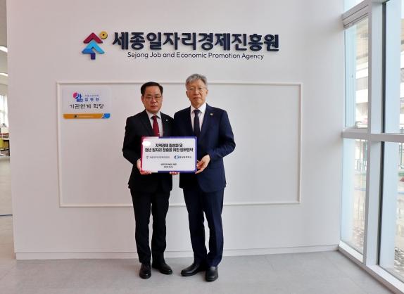 세종일자리경제진흥원과 세종상공회의소은 10월 16일 세종일자리경제진흥원 본원에서 지역경제 활성화 및 청년 일자리 창출을 위한 공동 노력을 위해 업무협약을 체결했다.
