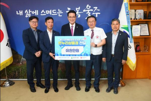 울주군은 이날 군청 소회의실에서 이순걸 군수, NH농협은행 진태윤 울주군 지부장, 이윤길 울주군청 출장소 지점장, 대한적십자사 울산지사 허정구 사무처장 등이 참석한 가운데 온누리상품권 전달식을 가졌다.