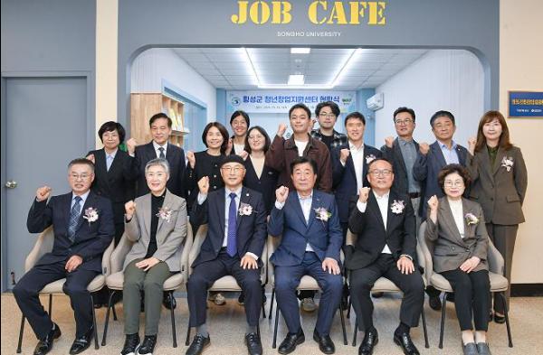 횡성군은 김명기 횡성군수, 이경중 송호대 총장, 정운현 횡성군의회 부의장, 여러 관계자가 참석한 가운데 16일 송호대학교 도약관 1층에서 청년창업지원센터 현판식을 개최했다.