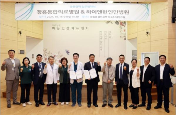 장흥통합의료병원과 하이예현인민병원은 16일 업무협약을 체결해 의료 분야 교류에 물꼬를 텄다.