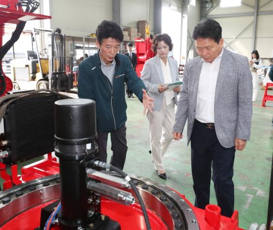 청주시 기업애로해소지원단 단장인 신병대 청주부시장이 16일 청원구 북이면에 소재한 기업 ‘사람과기술’을 방문해 현장을 살펴보고 관계자와 대화 시간을 가졌다.