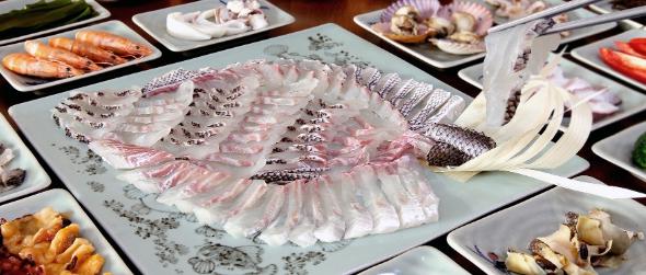 푸른 바다를 바라보며 즐기는 신선한 회 한 상은 미식의 즐거움을 더욱 풍성하게 만들어 준다.