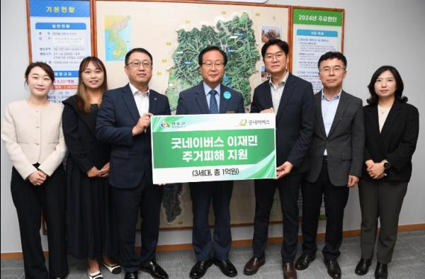 굿네이버스가 완주군 화산면 이재민 주거 피해 복구 사업비 1억 원을 전달했다.