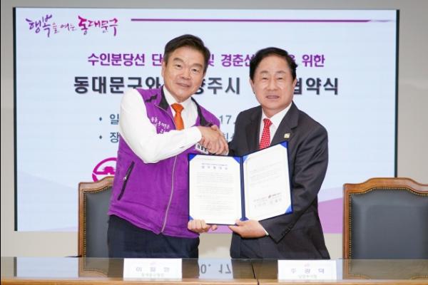 협약식은 이필형 동대문구청장, 주광덕 남양주시장 등 관계자들이 참석한 가운데 진행됐다.