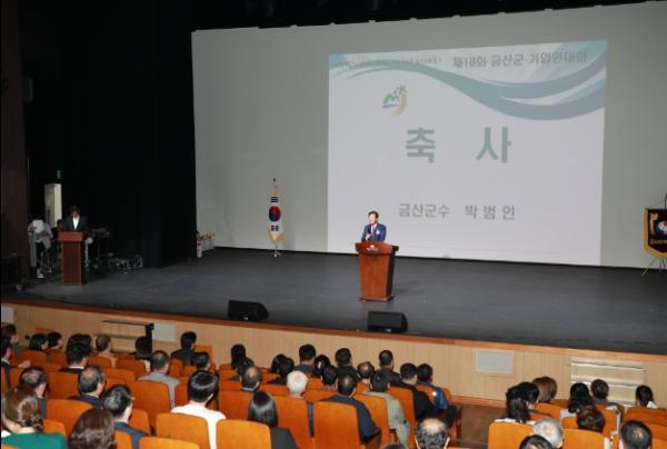 제18회 금산군 기업인대회가 지난 17일 금산다락원 대공연장에서 박범인 금산군수, 김기윤 금산군의회 의장, 신상오 금산군기업인협회장, 김호택 대전상공회의소 부회장 등을 비롯해 관내 기업인 200여 명이 참석한 가운데 성황리에 개최됐다.