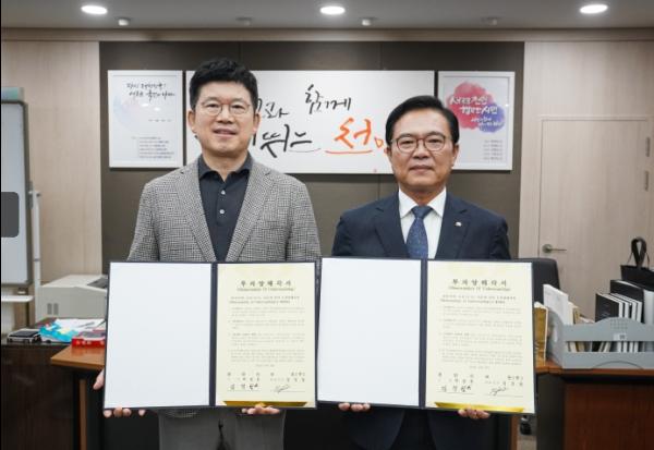 천안시가 소재·부품·장비 전문기업인 코론(주)과 18일 첨단 기술 협력을 위한 투자양해각서(MOU)를 체결했다.