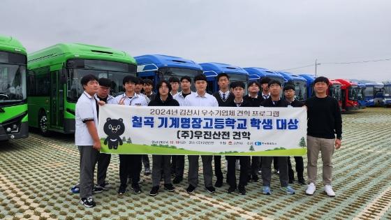 이날 견학 프로그램은 칠곡군에 소재한 경북기계명장고등학교 학생을 대상으로 철도차량·전기버스 제작 전문기업인 (주)우진산전 김천공장 현장을 견학하고 취업 프로그램을 진행했다.