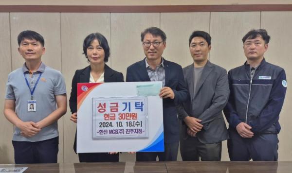 한전MCS(주) 진주지점은 18일 관내 저소득계층을 위해 사용해달라며 성금 30만 원을 금산면사무소에 전달했다.