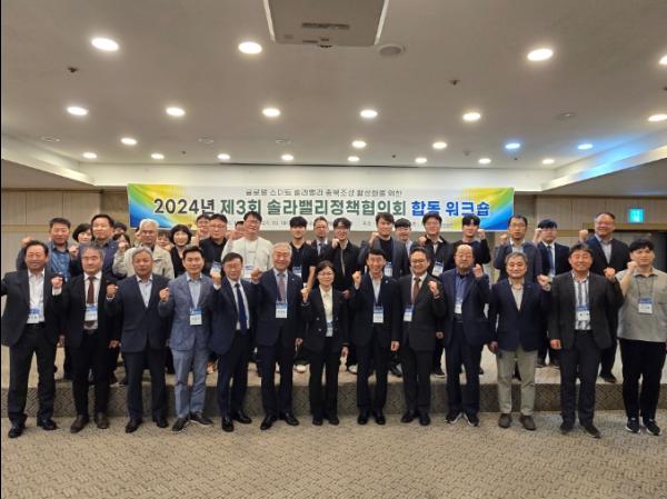 충청북도는 10월 17일부터 18일까지 충주 수안보상록호텔에서 솔라밸리정책협의회 위원, 도-시·군 신재생에너지 담당자 70여 명이 참석한 가운데 충북 신재생에너지 산업의 발전 방향 논의 등 기관 간 정보공유와 네트워크 강화를 위한 ‘2024년 제3회 솔라밸리정책협의회 합동워크숍’을 개최했다고 밝혔다.