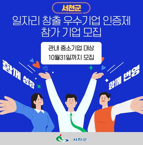 서천군은 지역경제 발전과 고용 촉진에 기여한 일자리 우수기업을 발굴·지원하기 위해 ‘2024년 서천군 일자리창출 우수기업 인증제’참여 기업을 오는 31일까지 모집한다.