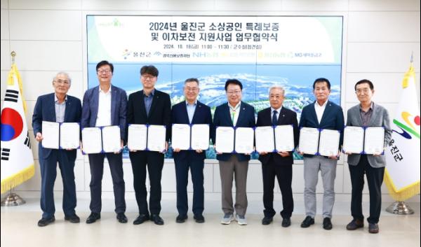 이번 협약은 소상공인 특례보증 및 이차보전 지원을 위한 것으로, 군은 협약 체결 후 울진군에 사업장 소재지를 둔 소상공인을 대상으로 최대 30억 원 규모의 특례 보증 지원사업을 추진할 계획이다.