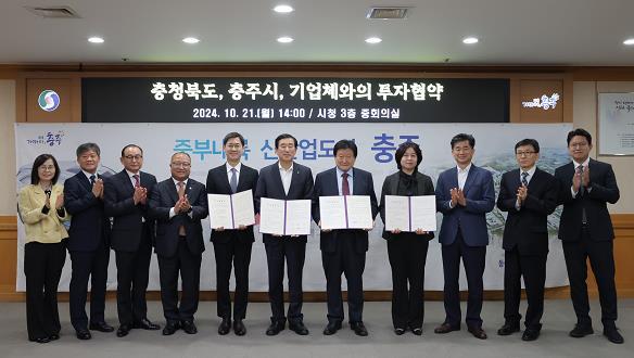 충청북도와 충주시는 21일 충주시청 3층 중회의실에서 ㈜에스앤에스 등 3개 사와 1,400억 원 규모의 투자협약을 체결했다.