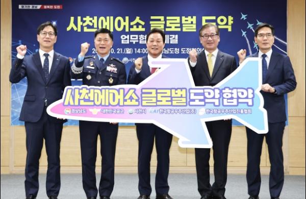 경상남도는 21일 경남도청에서 사천에어쇼를 국제적 수준의 산업전으로 확대하기 위해 대한민국 공군, 사천시, 한국항공우주산업(주), 항공우주산업진흥협회와 업무협약을 체결했다.