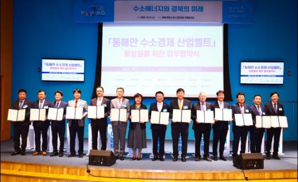 울진군은 10월 21일 포스코 국제관에서 개최된 '동해안 수소경제 포럼'에서 손병복 울진군수, 양금희 경상북도 경제부지사, 이강덕 포항시장을 비롯한 14개 수소산업 관련 대학, 기업, 연구기관과 함께 '동해안 수소경제 산업벨트 활성화를 위한 업무협약'을 체결했다.