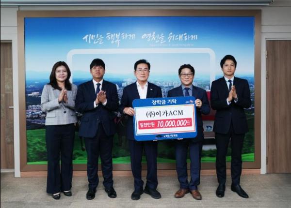 ㈜이가ACM은 경산에 위치한 건설사업관리 및 감리회사로, 영천지역 인재를 위해 1,000만원을 기탁함과 더불어 직원들도 500만원의 장학금을 기탁했다.