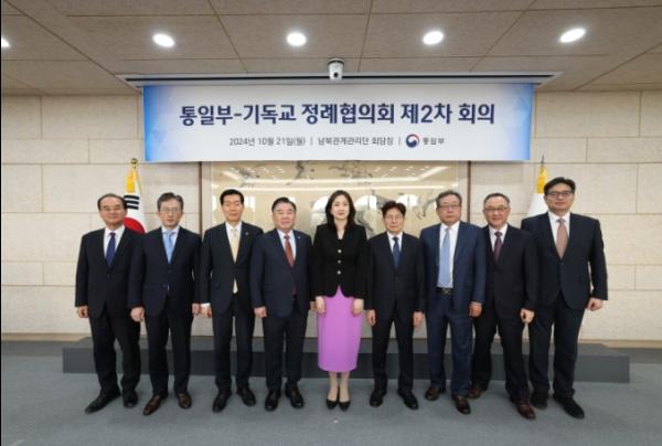 통일부는 10월 21일 남북관계관리단 회담장에서 2024년 통일부-기독교 정례협의회 제2차 회의를 개최했다고 밝혔다.