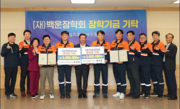 광양시는 21일 시청 접견실에서 포스코DX 노사가 재단법인 백운장학회에 지역인재 육성을 위해 각각 300만 원, 총 600만 원의 기부금을 기탁했다고 밝혔다.