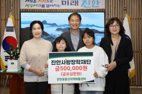 진안 꿈동산 지역 아동 센터에서 지난 21일 진안사랑장학재단에 50만원의 장학금을 기탁했다.