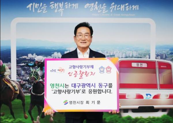 최기문 영천시장이 고향사랑기부제 활성화를 위해 22일 ‘고향사랑기부 인증 챌린지’에 동참했다.