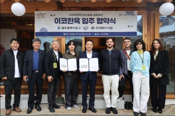 광주 동구는 22일 제5차 광주폴리 프로젝트로 조성된 이코한옥(동명동 209-106번지 소재)의 입주기업으로 선정된 예비사회적기업 ㈜시점과 입주 협약을 체결했다고 밝혔다.