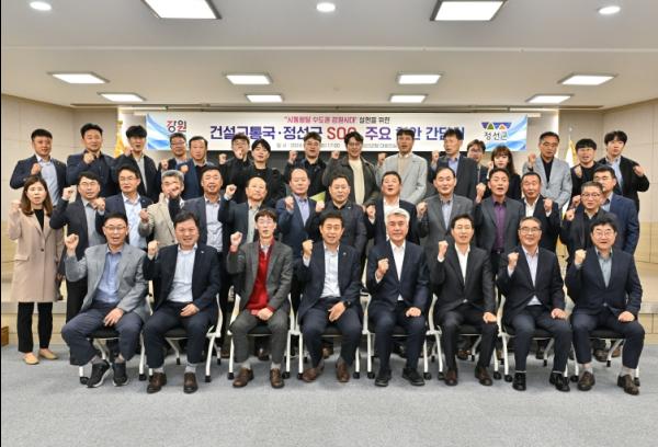 정선군과 강원특별자치도는 22일 군청 대회의실에서 ‘사통팔달 수도권 강원시대 실현’을 위한 사회간접자본(SOC) 간담회를 개최했으며, 이번 간담회에는 최승준 정선군수, 최봉용 강원도 건설교통국장, 이종구 도 SOC정책관, 김동균 도 지역도시과장 등 주요 관계자들이 참석했다.