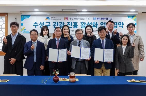 수성문화재단은 지난 22일 대구문화예술진흥원 관광본부, 하나투어ITC와 대구 수성구 관광 진흥 활성화를 위한 3자 간 업무협약을 체결했다.
