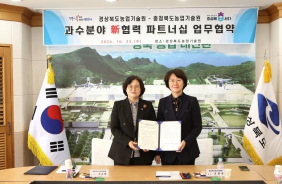 경상북도농업기술원은 23일 경북농업기술원에서 충청북도농업기술원과 최근 이상기후로 과수 분야에 발생하는 문제와 해결 방안을 공동 대응하기 위해 ‘과수분야 신협력 파트너십’ 양해각서를 체결했다.