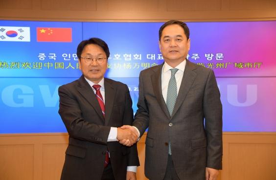 강기정 광주광역시장은 23일 시청 비즈니스룸에서 양완밍 중국인민대외우호협회 회장을 포함한 중국 대표단을 만나 ‘광주-중국 간 상호교류 및 협력 방안’을 논의했다.