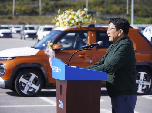 기념행사는 GGM 수출 차량 경과보고, 윤몽현 대표의 인사말, 강기정 시장의 축사, 테이프 커팅 및 수출 성공 염원 메시지 부착 퍼포먼스, 차량 상차 순으로 진행됐다.