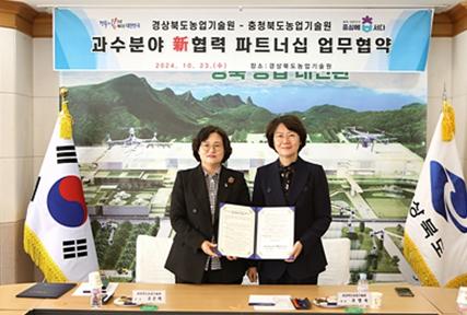 충북농업기술원은 10월 23일 경북농업기술원에서 경북농업기술원과 과수 분야 상호 보완적 연구개발과 기술 보급을 위해 신협력 파트너십 협약을 체결했다고 밝혔다.