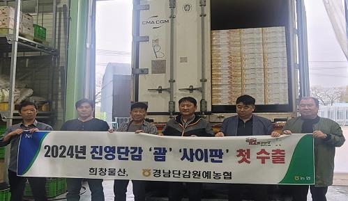 김해시는 지난 22일 김해시 진영읍 본산리 경남단감원예농협 산지유통센터에서 농협, 시, 수출업체 관계자 등이 참석한 가운데 올해 진영에서 수확한 햇단감 수출을 위한 첫 선적을 했다고 234일 밝혔다.