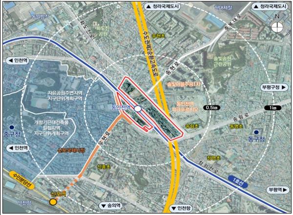 인천광역시는 10월 23일 시(市) 도시계획위원회 심의를 통과함으로써 동구 송현동과 중구 인현동 일원 93,483㎡를 도시개발법에 따라 진행하는 ‘동인천역 도시개발구역 지정 및 개발계획’ 수립 절차를 완료했다고 밝혔다.