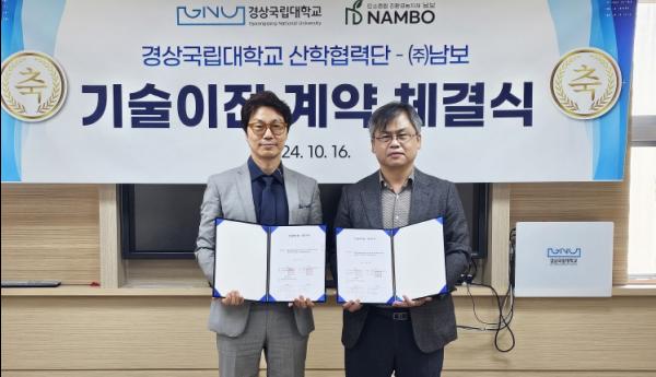 경상국립대학교(GNU·총장 권진회) 산학협력단(단장 최병근)은 10월 16일 주식회사 남보(대표 박순한)에 ‘길항미생물 활용 복합기능성 바이오차 제조방법과 농업적 활용방안’(연구책임자 서동철 농업생명과학대학 환경생명화학과 교수) 관련 기술이전 계약을 체결했다.