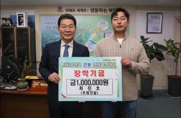 부안읍 최진호(호림건설)씨는 지난 23일 부안군 근농인재육성재단을 방문하여 지역인재육성을 위한 장학금 100만원을 기탁했다.