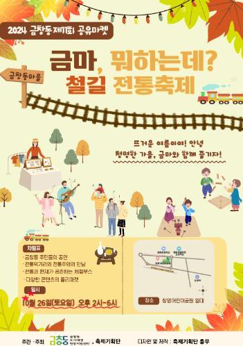 인천 동구와 금창동 도시재생현장지원센터는 금창동 제11회 공유마켓 ‘금마, 뭐하는데? 철길 전통축제’를 오는 26일 창영어린이공원 일원에서 개최한다고 밝혔다.