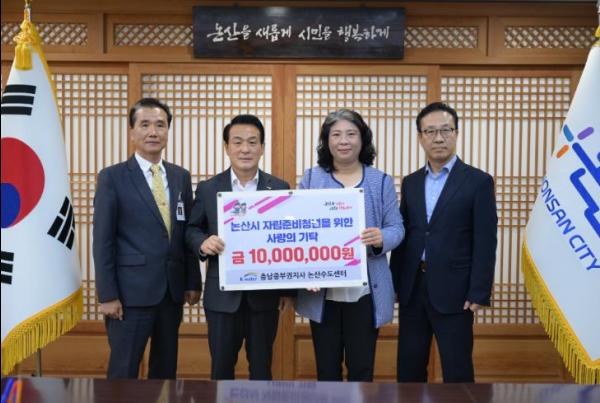 K-Water 충남중부권지사 논산수도센터는 23일 ‘논산시 지방상수도 운영 20주년’을 기념하여 관내 자립준비청년들을 위한 1천만원의 기부금을 전달했다.
