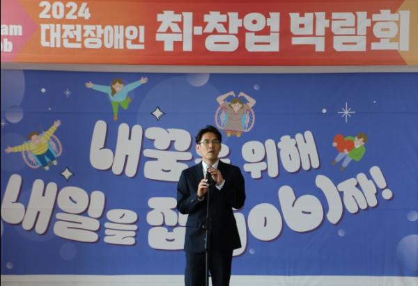 장호종 대전시 경제과학부시장은 “이번 박람회가 취?창업을 희망하는 장애인분들에게 사회에 참여하고 지역사회 구성원으로 어깨를 나란히 하는 기회가 됐길 바란다”라며 “앞으로도 장애인의 경제적 자립과 사회통합의 기회를 제공하는 다양한 정책을 추진하겠다”라고 말했다.
