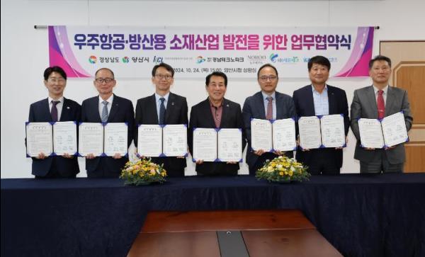 양산시와 경상남도는 24일 오후 양산시청에서 ‘우주항공·방산용 실란트 소재 초격차 기술개발 및 실증사업 추진을 위한 업무협약식’을 개최했다.