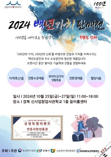 백년가치 판매전은 안동 지역의 백년가게, 백년소상공인의 우수 상품을 홍보하고, 우수 소상공인을 발굴해 자신의 상품을 선보일 수 있는 기회를 제공하는 자리다.