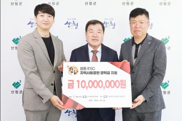 (사)대한한돈협회 산청지부는 지난 2018년 기탁을 시작으로 7년째 지역 인재 육성에 힘을 보태고 있다.