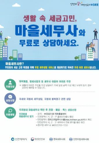 마을세무사 이용 방법 등 자세한 사항은 중구 홈페이지-종합민원-지방세-마을세무사를 참고하거나 미추홀 콜센터로 문의하면 된다.