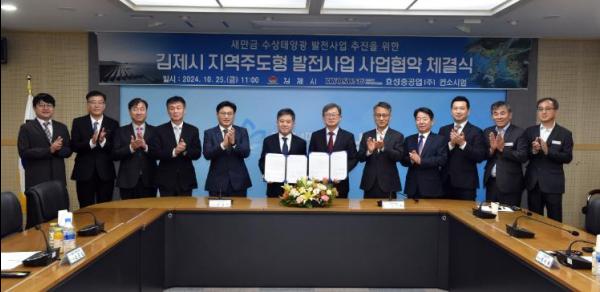 김제시는 25일 효성중공업주식회사 컨소시엄과 “새만금 김제시 지역주도형 수상태양광 발전사업”에 관한 사업협약을 체결했다고 밝혔다.